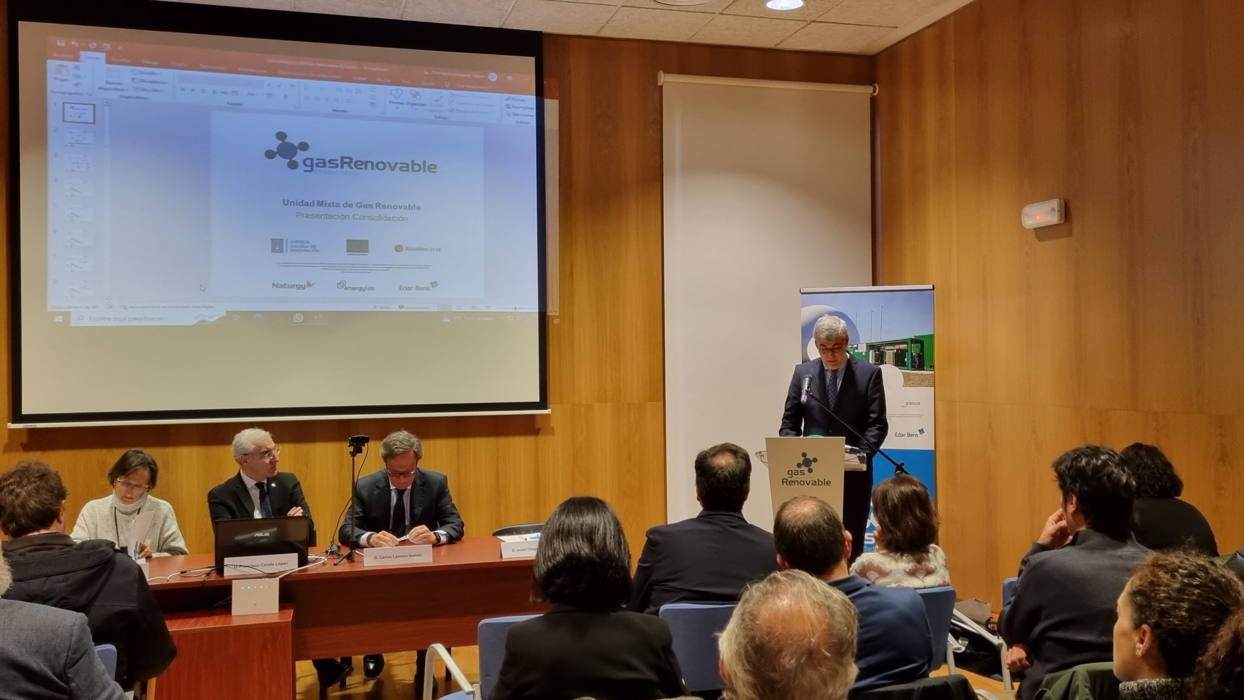 Los principales resultados del proyecto fueron presentados por la responsable del área de bioenergía de EnergyLab, Dª Mónica Figueroa, que indicó que “la Unidad Mixta es un reflejo de la combinación de la investigación a diferentes escalas y de la posibilidad de obtener energía renovable a partir de los diferentes recursos presentes en una EDAR”. Y para finalizar la ronda de intervenciones, el responsable de área de innovación en gases renovables de Naturgy Nuevas Energias, D. John Chamberlain, destacó que “los proyectos de innovación industriales como la Unidad Mixta Gas Renovable, son fundamentales en el desarrollo de nuevas soluciones de biometano e hidrógeno, con el fin de maximizar la producción de estos gases y reducir sus costes de producción”.