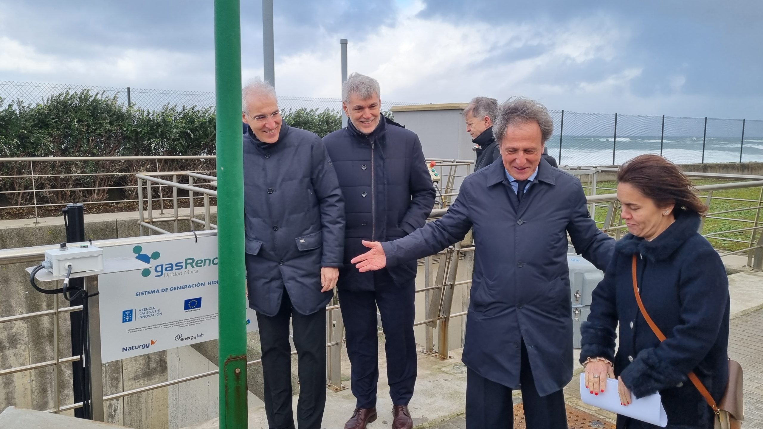 El martes 17 de febrero se celebró una jornada dentro de la Unidad Mixta Gas Renovable, en la que contamos con el vicepresidente primeiro y conselleiro de Economía, Industria e Innovación de la Xunta de Galicia, Francisco Conde López, y la concejala de Medio Ambiente y Sostenibilidad de A Coruña, Esther Fontán Prado, que visitaron las instalaciones ubicadas en la depuradora de Bens. Estuvieron además acompañados por el director general de EnergyLab, D. Fernando Val López, y el director general de Edar Bens SA, D. Carlos Lamora, así como representantes municipales de los ayuntamientos a los que presta servicio Edar Bens SA. En esta visita se mostró el sistema de generación de hidrógeno implementado, que está basado en la electrolisis del agua mediante tecnología de membrana polimérica protónica (PEM) y mediante la vía alcalina, y una turbina hidráulica situada en el punto de descarga del agua depurada de la EDAR, que aprovechará la diferencia de altura existente en la zona para generar electricidad.